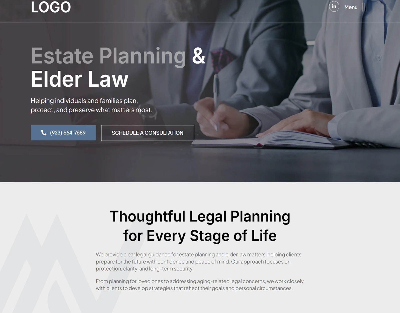 Elegant website designs crafted for attorneys specializing in wills, trusts, probate, and elder care planning.