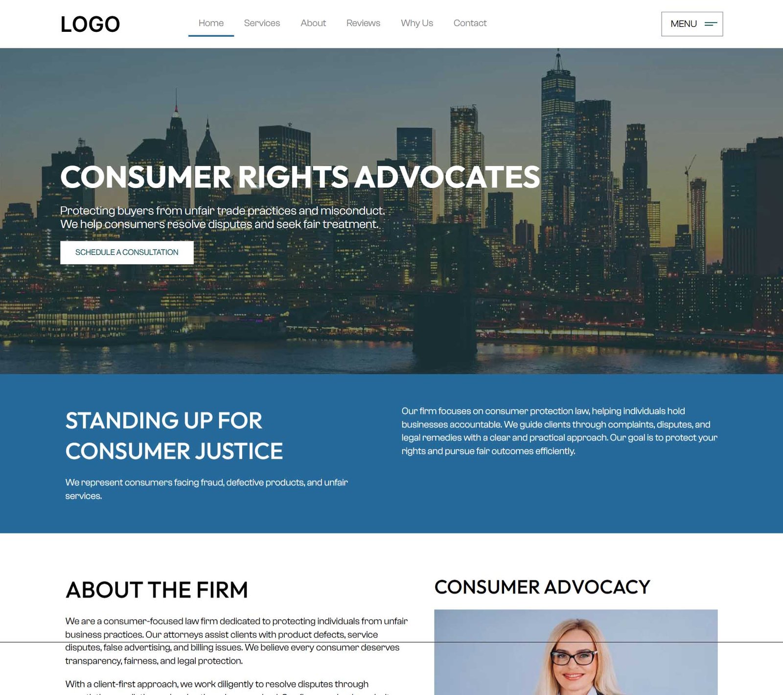Select a practice area to explore our professionally designed website with placeholder content ready to customize.